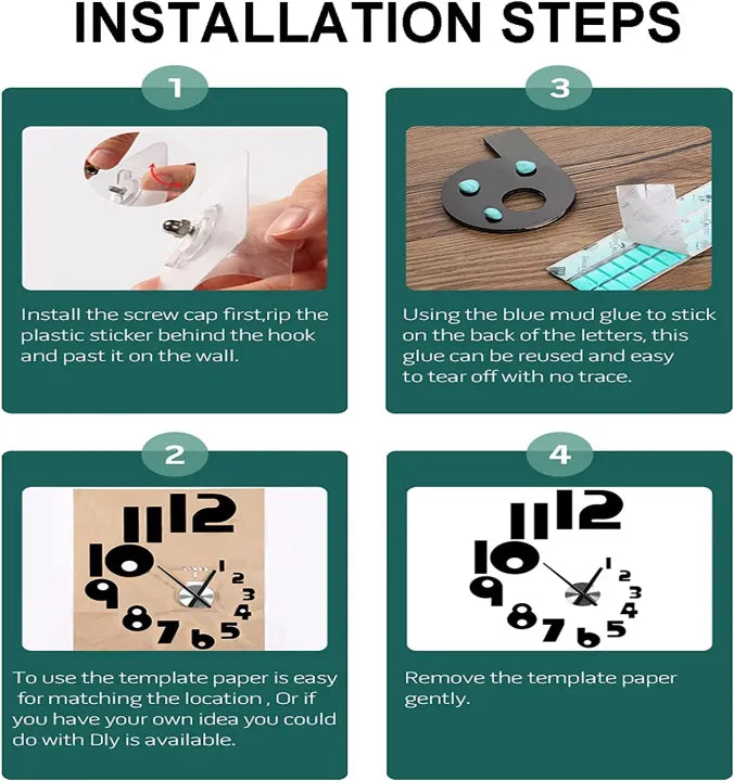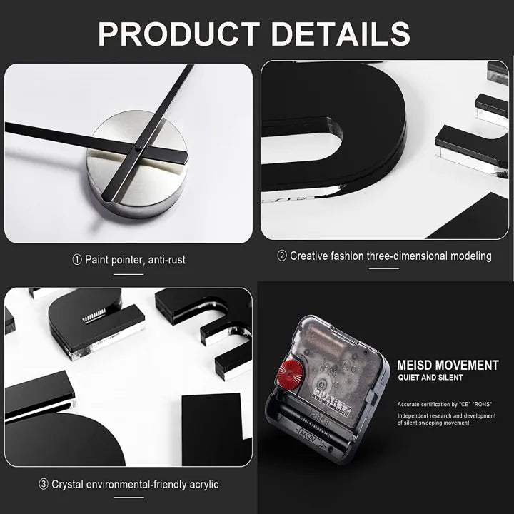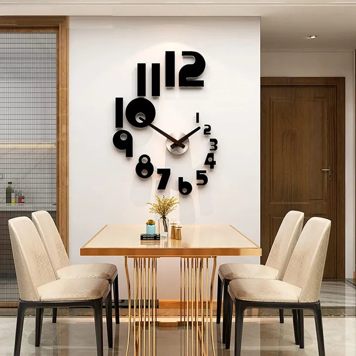 DIY 3D Wooden Wall Clock, stylish Wall clock design Living Room Clock Home Decor Wooden Wall clock- Black color